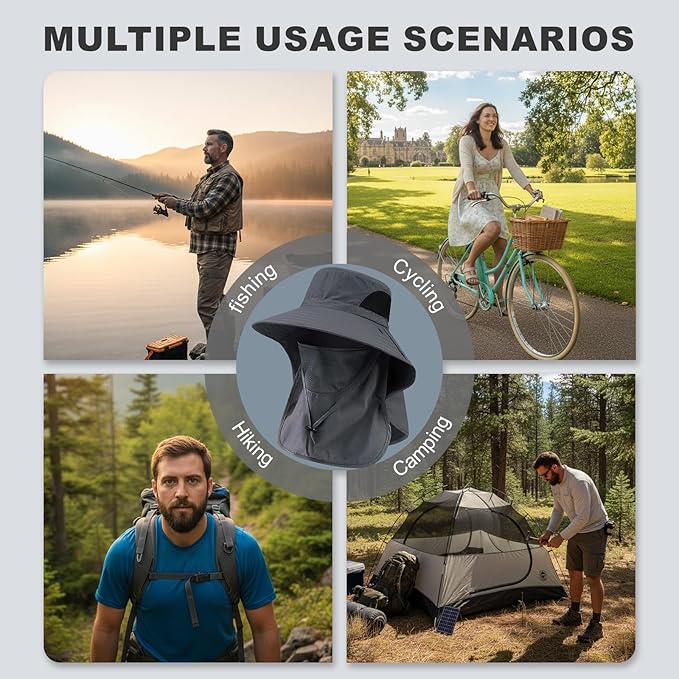 The ultimate outdoor companion for fishing, hiking, and gardening. Features a detachable design for effortless style and 360° protection.